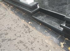 В ходе работ возникло небольшое недопонимание между нами и администрацией кладбища. Нас попросили убрать выступающую на проезжую часть площадь прилежащей территории. Конфликт был урегулирован, мы немного подрезали гранит и положили в образовавшуюся нишу холодный асфальт.